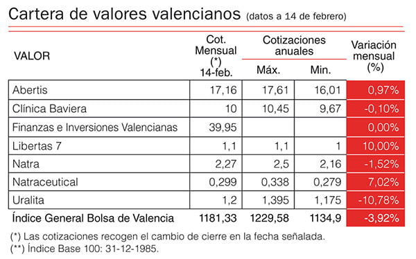 Por lo que respecta al volumen negociado a través de la Bolsa de Valencia, se contrataron cerca de 7.004 millones de euros durante el mes de enero. En la primera quincena de enero se han negociado más de 376 millones de euros.