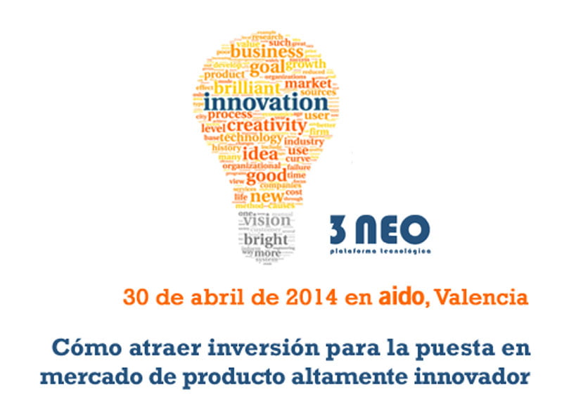 Hoy 30 de abril se celebrará en el Instituto Tecnológico de Óptica, Color e Imagen (Aido) la jornada “Cómo atraer inversión para la puesta en mercado de productos altamente innovadores” organizada por la Plataforma Tecnológica 3NEO y dirigida a aquellos empresarios y emprendedores que necesiten un apoyo financiero para introducir en el mercado sus productos innovadores.