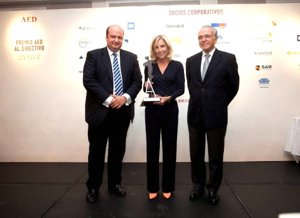 María Dolores Dancausa, consejera delegada de Bankinter, recogió anoche el premio AED al Directivo que la acredita como el ejecutivo español que mejor labor ha desempeñado en año 2013. Isidro Fainé, Presidente de La Caixa y Fundador y Presidente de Honor de la de la Asociación Española de Directivos (AED), fué el encargado de entregar la distinción a Dancausa.