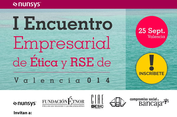 Se celebra hoy en Valencia el I Encuentro de Ética y Responsabilidad Social organizado conjuntamente por Nunsys, empresa de soluciones integrales TIC, la Fundación ÉTNOR, 20 años dedicada a promover la ética empresarial en nuestro entorno, y el Centro de Innovación y Aplicación Ética de ESIC, apoyadas por la Fundación Bancaja, y la colaboración de la CEV y HP.
