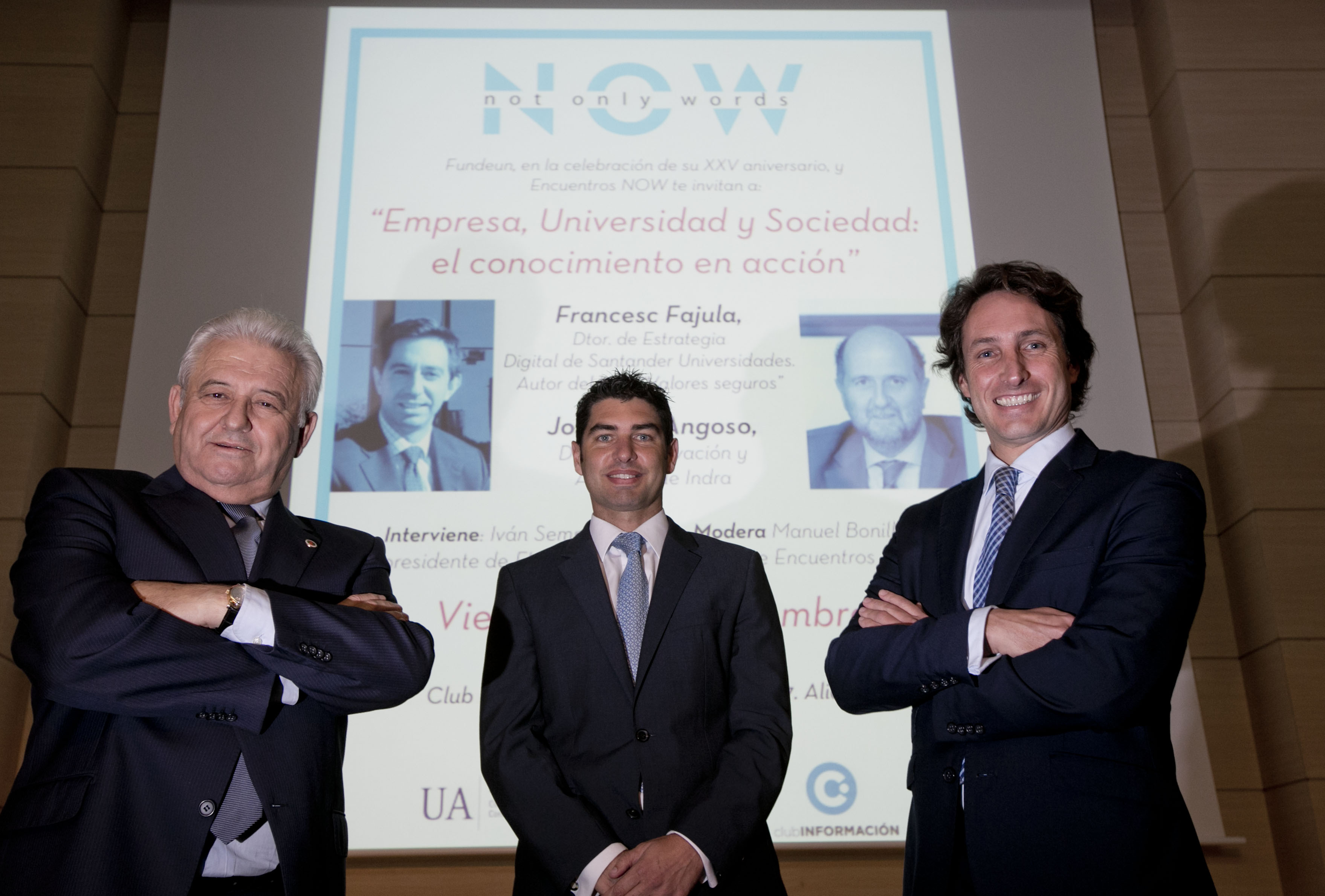 El presidente del Consejo Social de la Universidad de Alicante, Francisco Gómez Andreu, el presidente de Encuentros NOW, Manuel Bonilla, y el presidente de Fundeun, Iván Sempere.