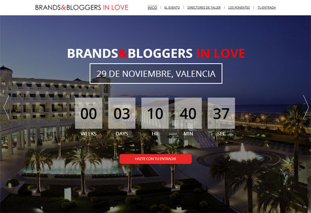 brandsandbloggersEl evento Brands & Bloggers In Love será un primer punto de encuentro entre las marcas y los bloggers para establecer un primer contacto, crear networking y conseguir colaborar en un futuro con grandes marcas a cambio de remuneración. Durante el evento los bloggers podrán disfrutar de cursos de formación para mejorar sus blogs, conferencias de los bloggers más influyentes de nuestro país y talleres junto a las marcas más importantes del panorama nacional para que puedan dar el primer paso hacia la profesionalización de su labor como bloggers y conseguir remuneración por su intenso trabajo.