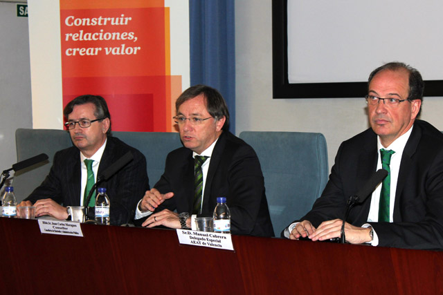El delegado especial de la AEAT de Valencia, Manuel Cabrera Pardo, ha aportado el punto de vista de la Administración Tributaria sobre la reforma fiscal remontándose a la subida impositiva de 2012 como el origen de ésta y recordando la necesidad de recuperar los tipos anteriores a aquella fecha. Además, ha recordado que en 2017 se implantará el SII, un nuevo sistema de gestión del IVA que aportará transparencia a la relación entre las empresas y Hacienda.