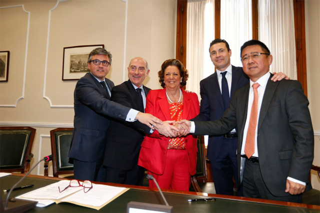 El Ayuntamiento de Valencia y el Valencia CF han firmado la escritura de permuta por los terrenos del nuevo Mestalla. Por parte del Valencia CF han firmado el presidente ejecutivo, Amadeo Salvo, y el consejero Kim Koh, y por el Ayuntamiento el concejal de Urbanismo, Alfonso Novo, asistido por el secretario Manuel Latorre, en presencia de la alcadesa de Valencia, Rita Barberá.