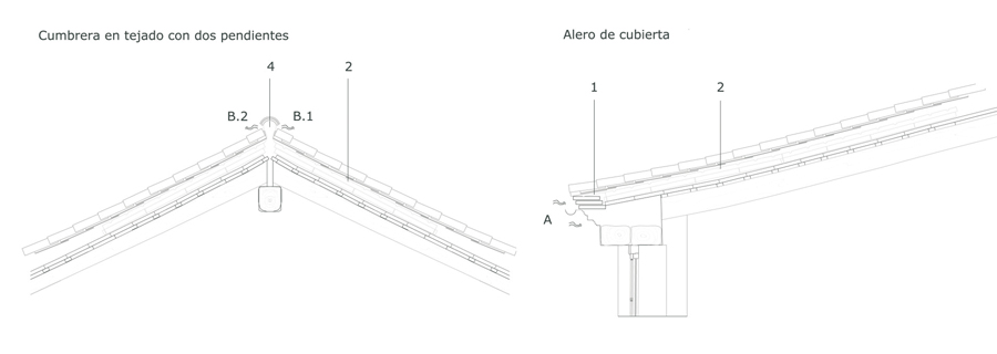 El módulo patentado comprende un armazón con una configuración alargada y plana y con una sección en forma de “U” invertida. Dicho armazón está destinado a unirse a los elementos estructurales de la cubierta de forma que se crea un espacio entre una cara superior del armazón y dicha cubierta a través del que fluye el aire, posibilitando las ventajas de refrigeración. “Para revestir toda la cubierta se emplea una pluralidad de armazones que se encastran entre sí. Además dispone de unos aleros, con varias aberturas, también destinadas a permitir el paso del aire, para lo que existen igualmente unas aberturas en la zona de la cumbrera de la cubierta”, destaca García Esparza. Este sistema permite que el aire entre a través de las aberturas de los aleros, recorra la cubierta a través del espacio libre que se crea con los armazones y salga por las aberturas de las piezas de cumbrera. Esta libre circulación de aire por la cubierta refrigera el habitáculo del edificio que queda directamente bajo cubierta, mejorando así las condiciones de confort de estos espacios.