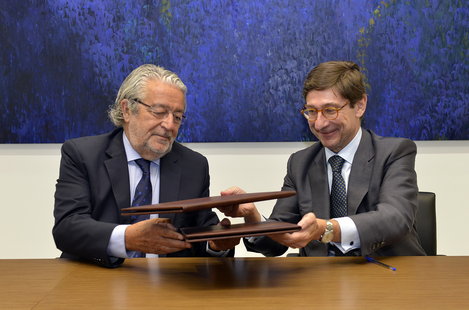 El presidente de Bankia, José Ignacio Goirigolzarri, y el presidente de Fundación Bancaja, Rafael Alcón, han firmado un acuerdo de colaboración mediante el que Bankia destinará 1,5 millones de euros para promover los proyectos de acción social en la Comunidad Valenciana que Fundación Bancaja desarrolle durante 2015 y 2016.