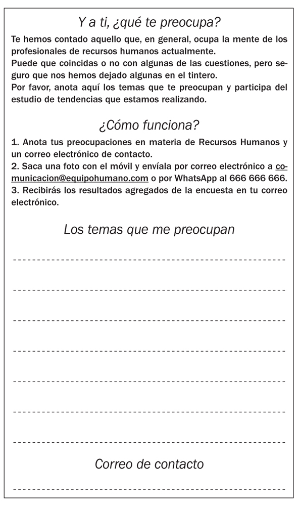 Como consultora especializada en la materia, mantenemos contacto con múltiples empresas de todos los sectores y tamaños, lo que nos da una perspectiva global sobre aquello que efectivamente preocupa en RR. HH.