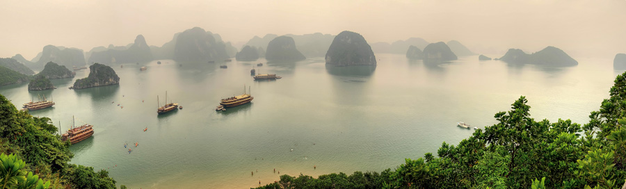 Como no podía ser menos, un lugar con la magia de la Bahía de Halong tiene un origen de leyenda. Se dice que fue creada por un grupo de dragones que bajaron del cielo y lanzaron una lluvia de perlas sobre el mar. Al contacto con el agua, las perlas se convirtieron en islas de roca que impidieron el avance de un terrible ejército invasor. Y así sigue siendo hoy, cuando las islas son la mejor protección del puerto de Haiphong, escondido en el fondo de la bahía. De vez en cuando, los grandes cargueros que hasta allí se dirigen resultan figuras incongruentes en la quieta belleza de la bahía.