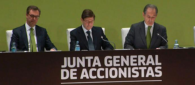La Junta General de Accionistas de Bankia ha aprobado hoy el pago del segundo dividendo de la historia de la entidad, al que destinará 302 millones de euros con cargo al beneficio del banco en 2015, un 50% más que la cuantía desembolsada con los resultados de 2014. El abono ascenderá a 2,625 céntimos de euro por acción, frente a los 1,75 céntimos de euro del año pasado.