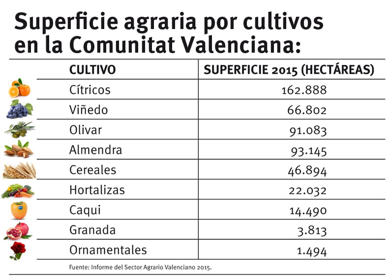 Superficie agraria por cultivos en la Comunidad Valenciana