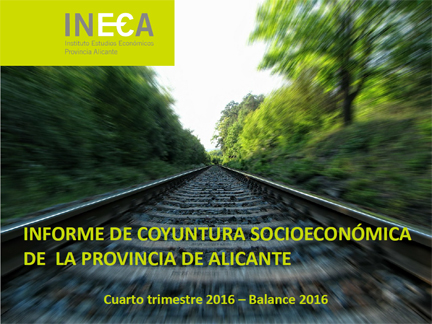 El Instituto de Estudios Económicos de Alicante (Ineca) ha presentado hoy su Informe de Coyuntura Socioeconómica 2016. Del documento se desprende que, con la práctica totalidad de los datos cerrados, el año 2016 ha servido para confirmar dos tendencias: mejoría general de los indicadores y pérdida de peso de la provincia en el conjunto nacional. El presidente de Ineca, Perfecto Palacio, ha señalado que la provincia de Alicante mantiene la tendencia del año anterior, es decir, una trayectoria ascendente, de recuperación, pero a un ritmo lento. «Nos alejamos de la buena marcha que lleva el país. Así que, consideramos que “vivimos en un momento allegro ma non troppo”.