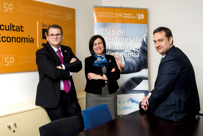 José Manuel Pastor, decano de la Facultad; Marisa Quintanilla, directora académica del Club; y Francisco Duato, presidente del Club de Mentores