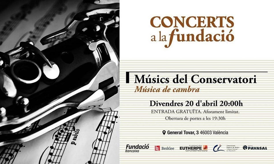Alumnos del Conservatorio Superior de Música Joaquín Rodrigo de València ofrecerán el próximo viernes un concierto de música de cámara dentro del ciclo Concerts a la Fundació, organizado por la Fundación Bancaja. Los jóvenes músicos interpretarán piezas de Jacques Ibert, Astor Piazzolla, Carl Maria von Weber, W. A. Mozart y Max Bruch.