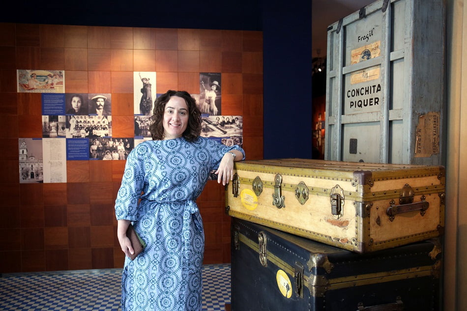 Glòria Tello junto a los míticos baúles de Concha Piquer