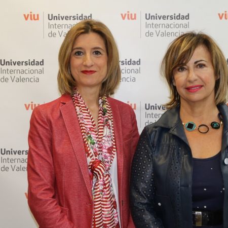 Eva Mª Giner rectora de la VIU y Mari Carmen Timor, presidenta de Fedele
