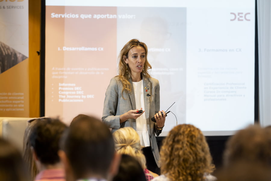 La cuarta ponente de la Jornada, antes del inicio de la Mesa de Debate con la que concluyó la sesión, fue Sofía Medem, líder del Consejo Consultivo de la Asociación DEC, la mayor comunidad hispanohablante de profesionales especializados e interesados por el modelo «Customer Experience» (más de mil miembros), que cuenta con el respaldo de las principales marcas internacionales (más de 130 empresas). La Asociación ha desarrollado y registrado la metodología ‘La onda del Cliente’, para la implantación de forma sistemática del modelo «Customer Experience» en empresas y organizaciones.