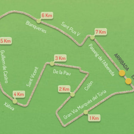 El recorrido, que pretende reivindicar la bicicleta como medio de transporte urbano principal, se adentrará por Gran Vía Marqués del Túria hasta llegar a la calle Russafa, donde enlazará con Colón hasta la Porta de la Mar. Ya en la calle de la Pau, el pelotón seguirá por Sant Vicent hasta la plaza del Ajuntament y Marqués de Sotelo. El itinerario seguirá por Xàtiva y Guillem de Castro hasta el antiguo cauce del río. El trayecto continuará por Blanqueries para regresar al paseo de la Albereda. En total serán 7,5 kilómetros de paseo por la ciudad.