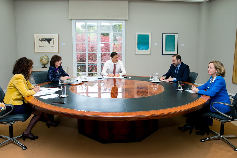 Sánchez y los ministros afectados tratan sobre la modificación del impuesto de actos jurídicos documentados (Foto Pool Moncloa | Fernando Calvo)