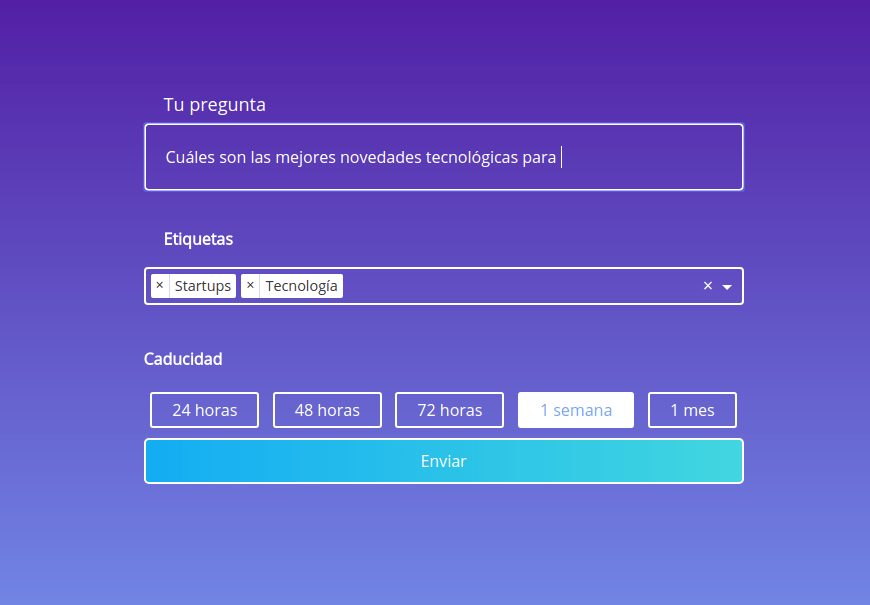 – Tenemos dos líneas de monetización pensadas para cuando tengamos la masa crítica suficiente pero vendrá marcado por el momento en que sepamos que al haber una pregunta en poco tiempo obtenemos bastantes buenas respuestas para que se establezca una competición para ser el primero en contactar. Este es un modelo que funciona en servicios parecidos en Estados Unidos y este nivel de competencia se llega a dar.