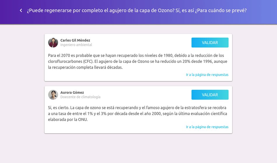 – A una pregunta clásica pueden llegar de media tres o cuatro respuestas. Cuando las respuestas son más de una, los periodistas nos han pedido, una vez que publican el artículo, añadirlo dentro la misma plataforma y esta automáticamente notifica a todos los expertos que han participado.