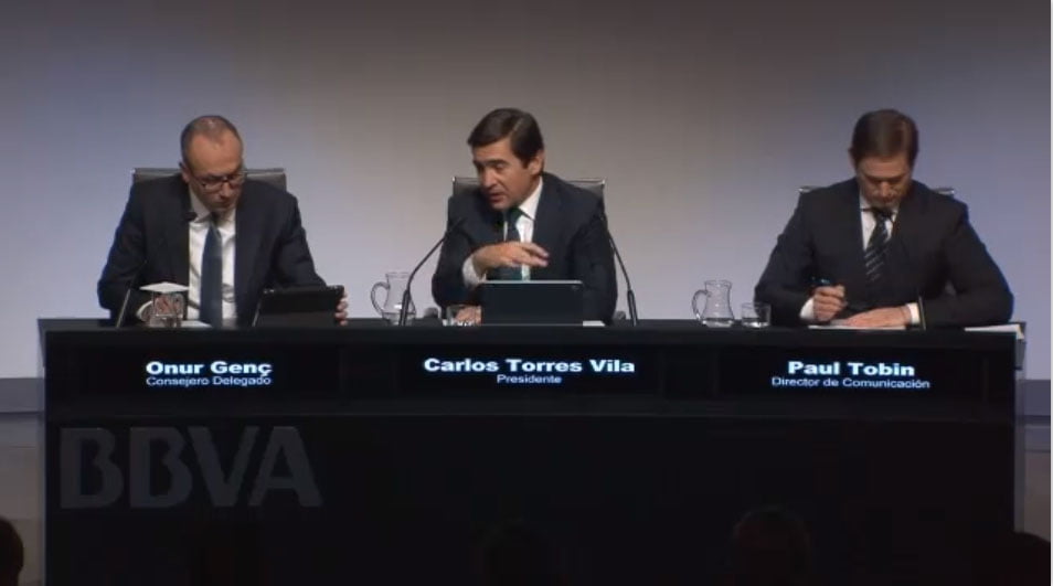 Ausente por primera vez en la presentación de resultados de BBVA, Francisco González ha sido el invitado de piedra del acto. La relación entre el excomisario Villarejo y el BBVA ha centrado el acto, en el que Carlos Torres Vila prometió «tolerancia 0, sin contemplaciones» ante lo que arroje la investigación, pidió que no se prejuzgara y dio todo su apoyo a su antecesor.