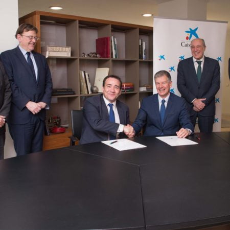 La firma del convenio ha contado con la presencia del conseller de Hacienda, Vicent Soler; el director general del IVG, Manuel Illueca, y el director territorial de CaixaBank, Xicu Costa.