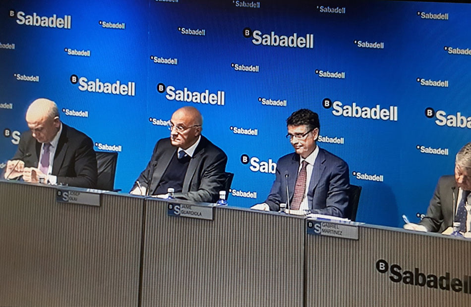 A la derecha, Gabriel Martínez del Banco Sabadell en la presentación de resultados en Madrid. | Foto: AJ