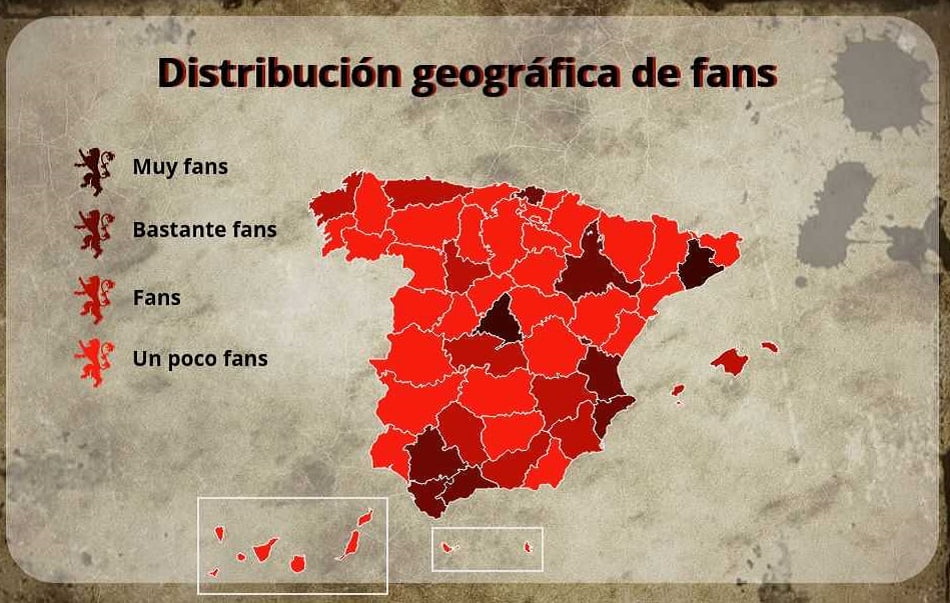 El comparador de precios online, ha analizado la demanda de todo tipo de productos de Juego de Tronos, concluyendo que los españoles son los segundos europeos que más productos demandan de la serie con un 17,77 %. También ha analizado qué comunidades son las más frikis, determinando que los valencianos ocupan la cuarta posición como fans de la serie 10,88%, sólo viéndose superados por los madrileños 25,03 %, andaluces 14,91 % y catalanes con un 13,54 %.