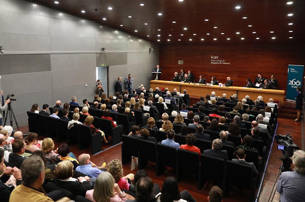 La decana del ICAV, Auxiliadora Borja, acompañada por los diputados de la Junta de Gobierno, ha hecho un repaso por su larga trayectoria, para, seguidamente, dar la palabra a Sirera, quien visiblemente emocionado, ha agradecido a la Junta de Gobierno el sentido homenaje.