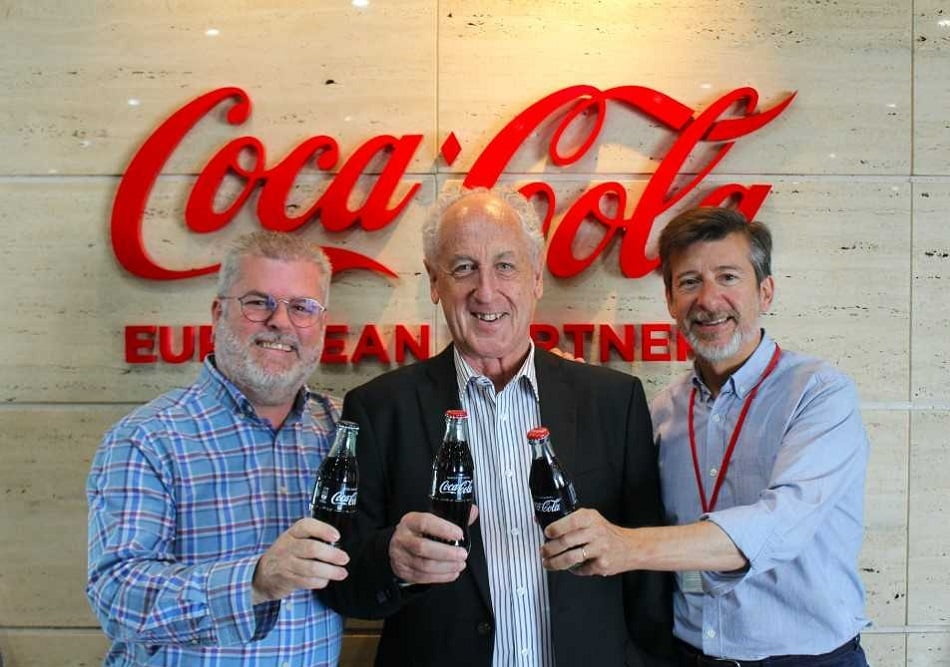 De izq. a der: Santiago Ruiz, gerente de Coca-Cola en la Comunitat Valenciana; Paco Borao, presidente de SD Correcaminos; y Fernando Álvarez, jefe de Comunicación, Relaciones Institucionales y Sostenibilidad de Coca-Cola en la Comunitat. | E3