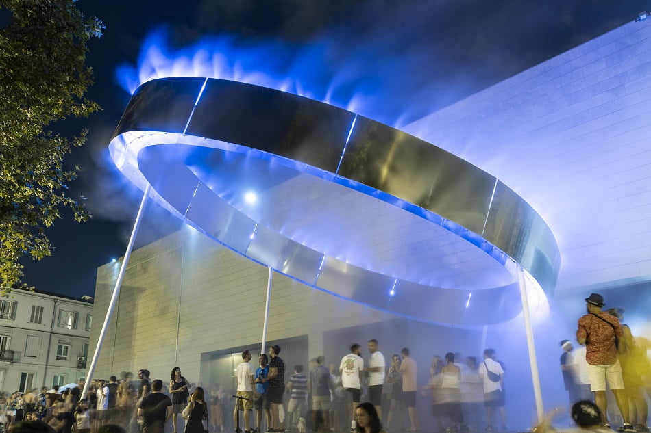 Los escalones del IVAM se convierten así en el punto de encuentro gratuito donde bailar, tomar unas copas y refrescarse bajo la «nube», que tiene programadas lluvias cada media hora . El objetivo es crear lo que el grupo Aranea denomina «un abrazo atmosférico que incite al encuentro”, un microclima en el entorno del IVAM como una especie de oasis en la ciudad.
