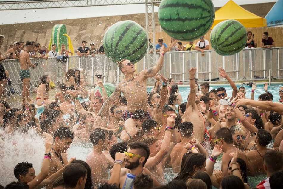 Decenas de jóvenes disfrutaron de la piscina en el segundo día de la fiestas de bienvenida del festival Arenal Sound. | Foto: EFE / Domenech Castelló