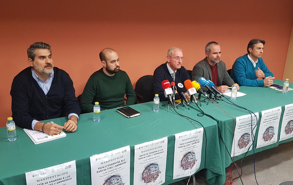 Representantes de las diferentes asociaciones de agricultores y ganaderos de la Comunitat Valenciana informan de la manifestación que tendrá lugar el próximo 14 de febrero en València. |E3