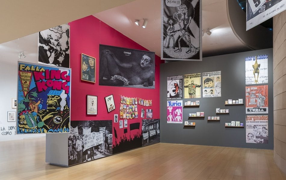 En la muestra no faltan ejemplos del cine underground de la época, de cómo el feminismo trabajaba para cuestionar los estereotipos de la mujer, de cómics transgresores o de la música punk, «un revulsivo en contra de la comercialización del rock», en palabras de Alberto Mira.
