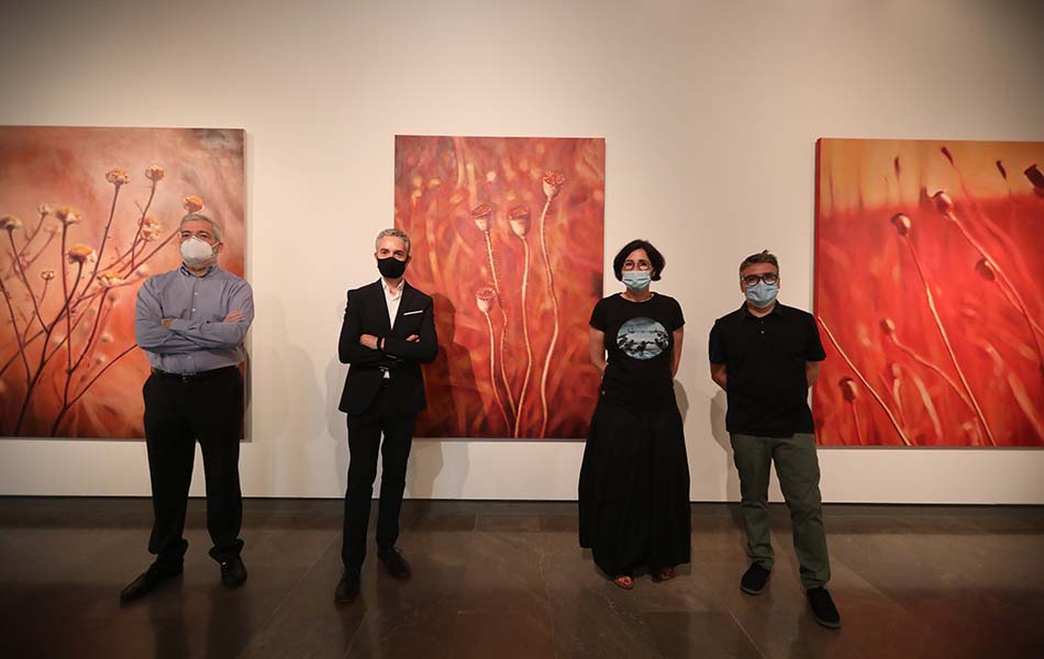 El título de la exposición, ‘Seres fuera de campo’, es el título de tres cuadros que aparentemente son paisajes en los que aparecen flores, pero flores que están como fuera de lugar, malheridas, en los márgenes del camino. Esto resume la idea sobre la que ha venido trabajando la artista, como es pensar en las personas marginales y de lo invisible del ser humano.