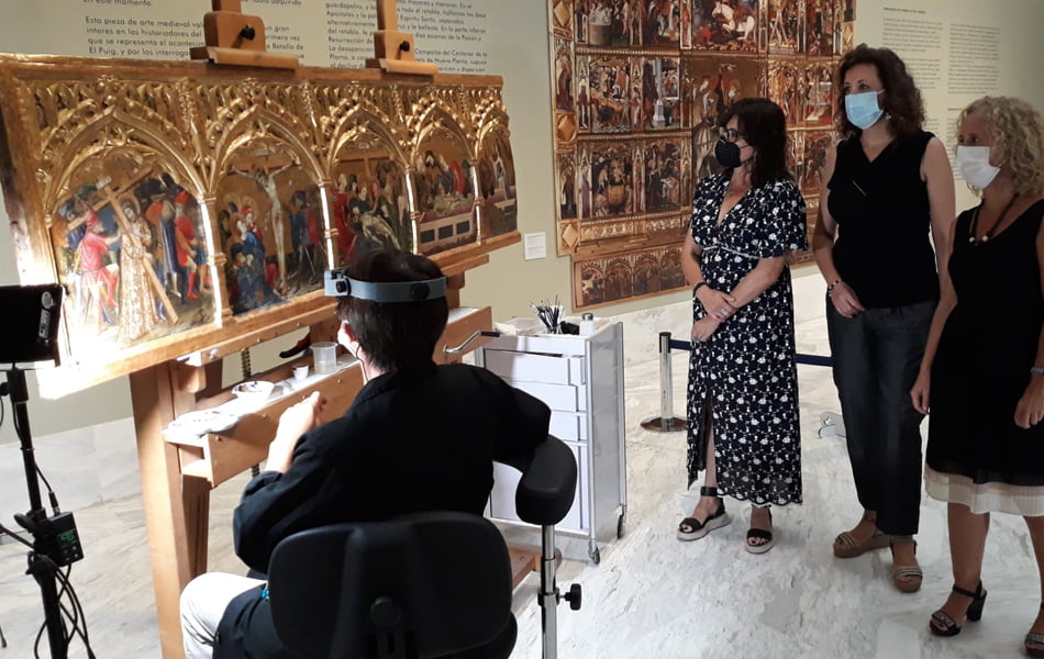 La predela forma parte de un retablo referente fundamental del gótico internacional valenciano que llegó procedente del Victoria and Albert Museum para ser estudiada y restaurada por los técnicos del IVCR+i. Los visitantes del museo pueden contemplar los trabajos de restauración en directo y se ha abierto un periodo de atención al público de 12:00 a 13:00 horas para contestar preguntas.