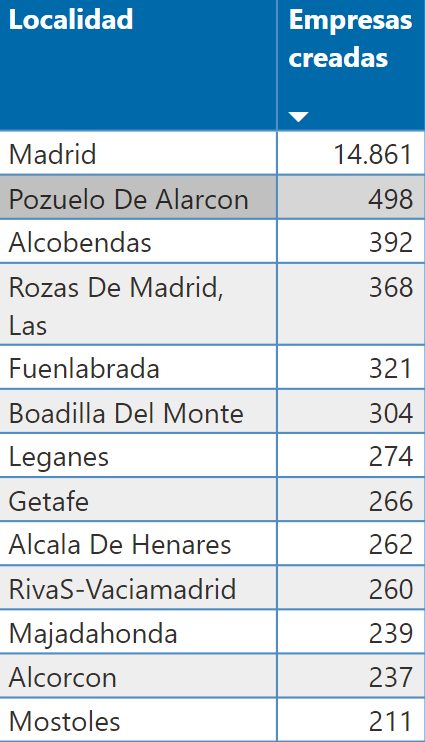 En municipios como Pozuelo se ha rozado el medio millar de empresas en el año, lo que supone unas 40 altas de media al mes; mientras en Alcobendas se alcanzaron casi las 400 nuevas compañías.
