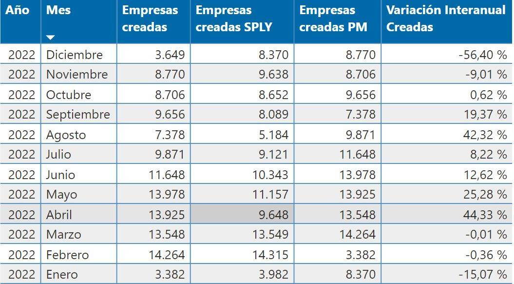 Sin embargo, pese a lo positivo de los datos, se refleja no obstante una desaceleración en el último trimestre del ejercicio; siendo diciembre el peor mes del año en nuevas constituciones, con 3.649 sociedades creadas; solo superado por el que fue el peor registro de 2022, enero, con 3.382 nuevas altas.