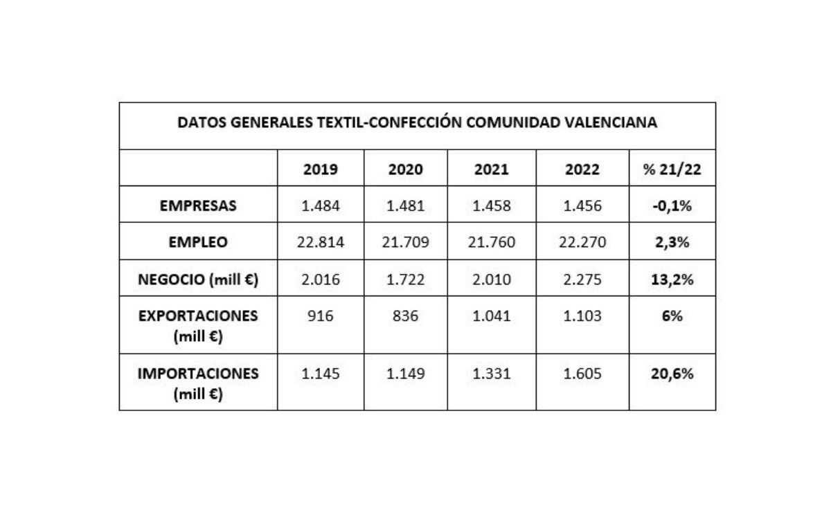 La cifra de negocio del textil valenciano crece un 13% respecto a 2019