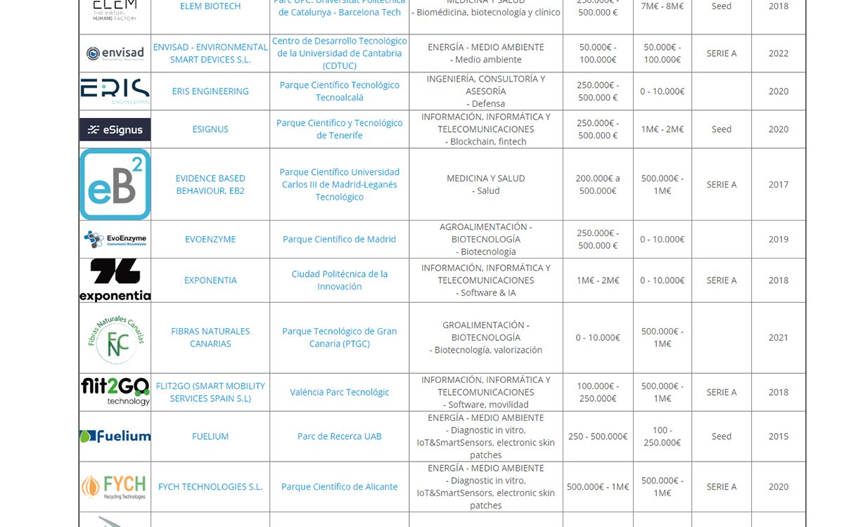 Las 100 startups más activas e innovadoras de los parques científicos españoles