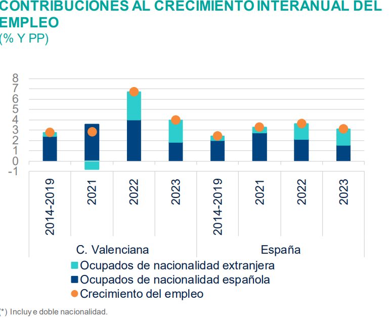 Pero volviendo a ese dinamismo del empleo, la contribución de los flujos migratorios al crecimiento está siendo según Doménech «muy importante». «Tres cuartas partes de todo el empleo que se ha creado es de personas que han nacido fuera de España, que tienen o no la nacionalidad española», ha subrayado.