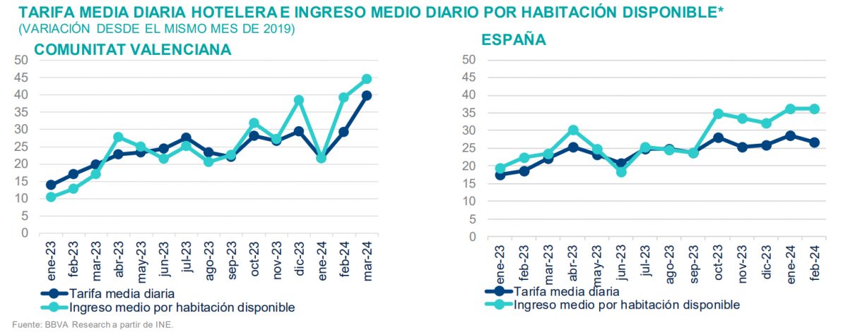 Otro dato positivo respecto al turismo es que se está desestacionalizando la ocupación hotelera, y además mejora su calidad y por tanto la tarifa media diaria crece, de hecho, es ya un 40-45% superior a la de 2019.