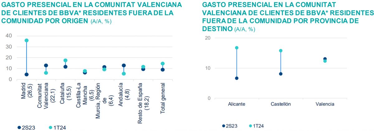 En el plano nacional, la mejora más sustancial la tenemos por los residentes de Madrid que nos visitan, y sobre todo, crece el gasto en la provincia de Alicante.