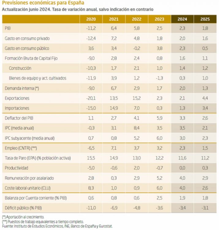 Desde el IEE, los economistas esperan que la inflación se mantenga en el 3,5% de media en 2024, a pesar de la desaceleración del componente subyacente (3%). De cara a 2025, la inflación general y subyacente podrían situarse en el 2,1% y el 2,3%, respectivamente.