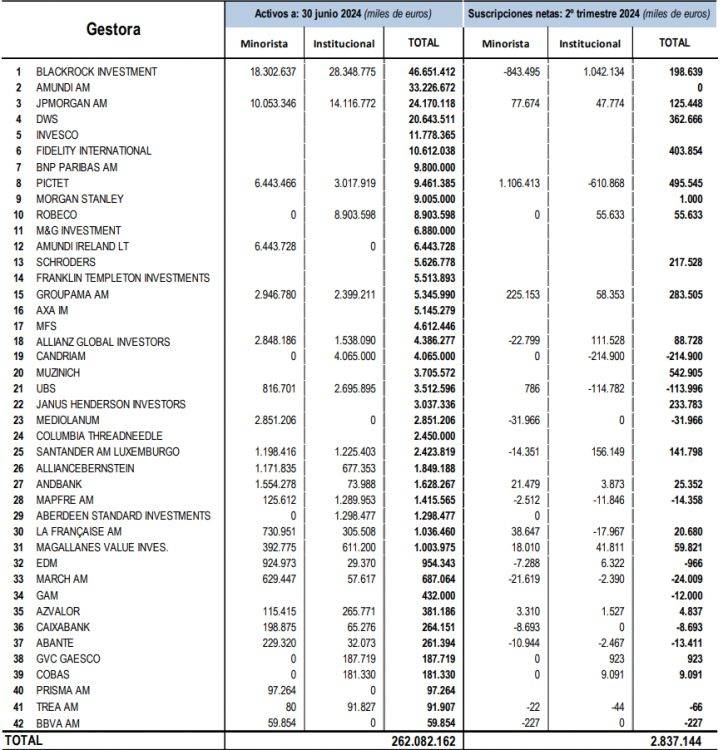 Si quieres consultar el listado completo de todas las gestoras que recoge Inverco en su informe consulta en esta pestaña.