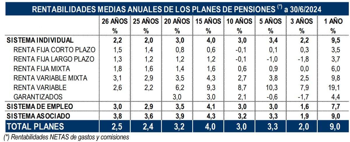 En cuanto a la rentabilidad de los Planes, a largo plazo, a 26 años, la rentabilidad media anual se sitúa en el 2,5% para el total de Planes. En el medio plazo (10 y 15 años), presentan una rentabilidad del 3% y 4% respectivamente. La rentabilidad a un año se sitúa en el 9% para el conjunto de Planes.