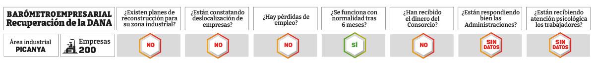 Seis meses después del paso de la DANA, sin que grandes empresas hayan abandonado la zona ni se hayan producido despidos generalizados, en Picanya se respira una cierta normalidad en el área industrial. En cuanto a los pagos del Consorcio de Seguros, muchas empresas ya han recibido anticipos, aunque algunas todavía no han percibido ni eso.