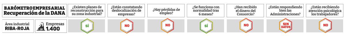 El empleo no ha se visto afectado por la DANA, incluso ha crecido en Riba-roja de Túria. «Nuestra área industrial está prácticamente al 100% de actividad y de ocupación. Estamos prácticamente a niveles predana», corrobora el gerente de la Asociación.