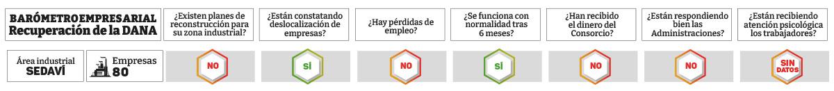 Con cierta resignación, el presidente de la Asociación de Comercios y Empresas de Sedaví (Acese), Germán García, comenta que, pese a los numerosos desperfectos y dificultades, la situación se ha convertido «en una normalidad» en la zona industrial del municipio. «Todo sigue igual, todo va muy despacio y no es culpa de nadie», señala.
