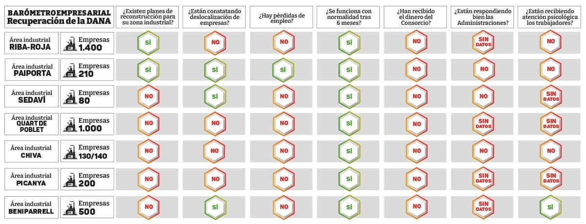 A punto de cumplirse medio año desde la DANA, Economía 3 publica su undécimo barómetro sobre la recuperación de las zonas industriales afectadas por la catástrofe. Han pasado casi seis meses desde aquel 29 de octubre en el que el agua arrasó buena parte de la provincia de Valencia. Sin embargo, en la mayoría de las áreas empresariales damnificadas, aún no existen planes de reconstrucción que permitan tanto la recuperación como la prevención de futuros desastres similares.